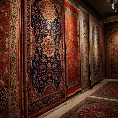 Premium carpets in wool, viscose, jute, and blended yarns, available in hand‑tufted, hand‑knotted, and flatweave constructions for residential and hospitality projects.