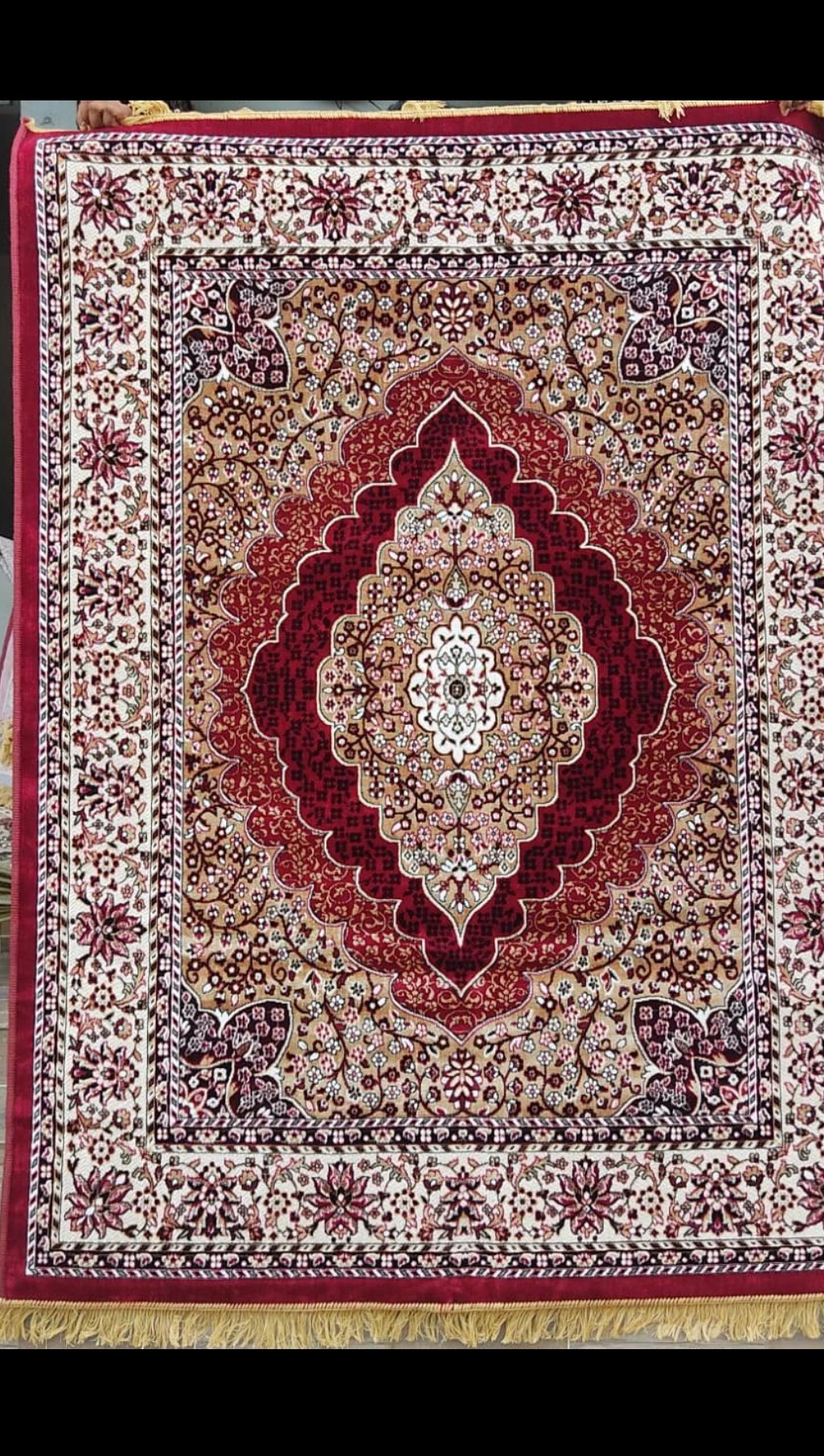 The Imperial Medallion Carpet (MM43) showcases a luxurious Persian-inspired medallion set against a warm red and beige base, detailed with floral and vine patterns. Its classic central motif, surrounded by symmetrical borders, adds depth and a sense of timeless elegance. The ivory floral border enhances contrast while maintaining harmony with the rich inner shades. Machine-woven using a blend of PP and mixed fibers, this rug offers exceptional texture, resilience, and easy maintenance — ideal for export buyers seeking premium quality and traditional aesthetics.